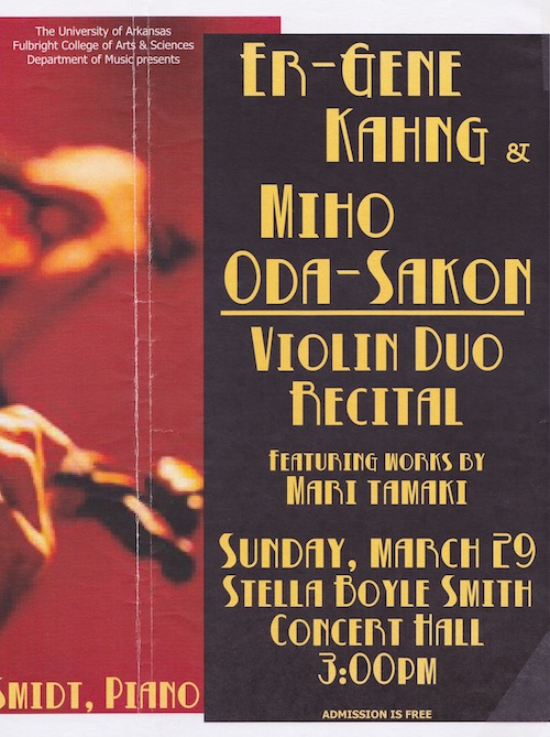 Composed 2 musical pieces for violin’s duo strings played by University of Arkansas’ lecturers at the concert.