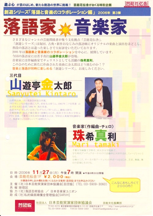 Composed music for Japanese classical Rakugo entitled UMAYAKAJI and AONA. They were reborn as completely new styles of Rakugo performance with Mari’s music.